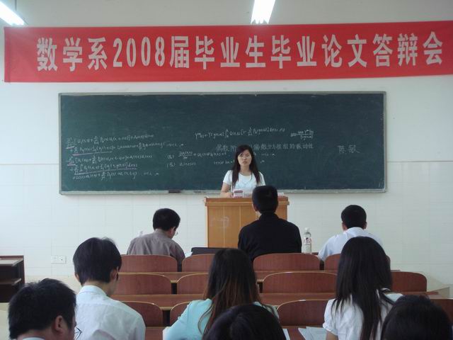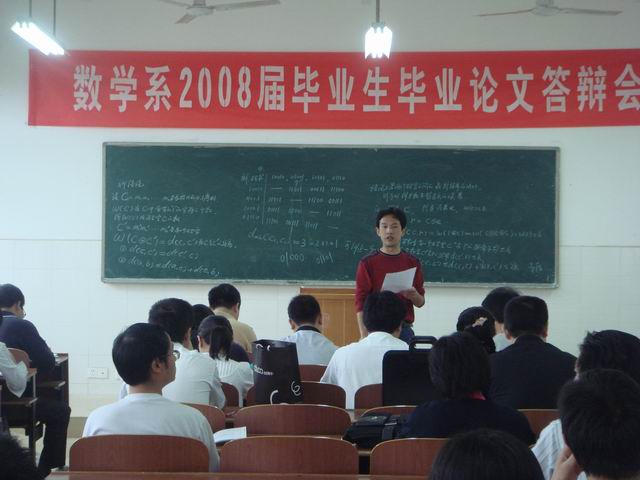 5月18日上午8:30,我系在数学教学楼420召开了首轮“数学系2008届毕业生毕业论文答辩会”。数学系所有专任教师、首轮参加答辩的毕业生以及即将进入大四的05级学生参加了此次答辩会。