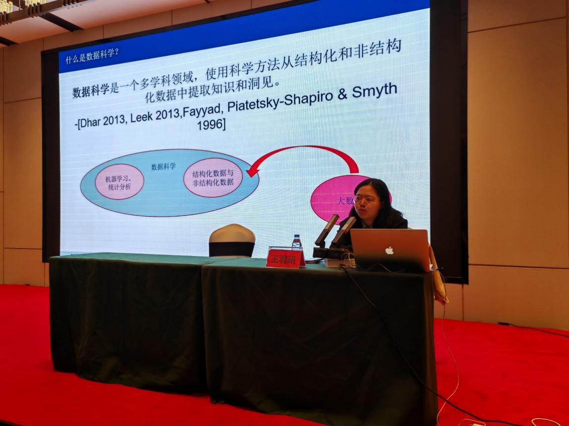 衡阳师范学院王君妍博士讲授的内容是《数据科学》。王博士分别从数据科学的发展阶段、研究框架和应用场景等方面介绍数据科学的概念。结合项目实施的情况讲授数据科学的工作流程。该部分王博士主要从项目需求、数据抽取、转换与加载、认识数据、确立模型和预测等方面介绍数据科学的工作流程。最后王博士讲授了数据的相关性与因果性。