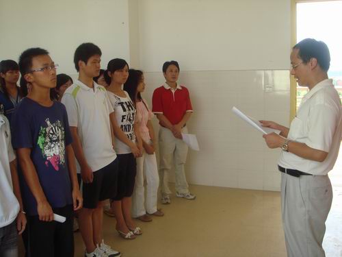 大会在雄伟的国歌声中拉开了序幕,首先由系党总支副书记林琼同志宣读发展新党员的决定,接着16名新党员面向鲜红的党旗,举起右手,在学生第一党支部书记汪俊同志的领誓下,庄严宣誓。随后,07级信息与计算科学专业2班黄义夫同学代表新党员发言,表示在今后的学习和生活中一定会履行好对党的承诺,积极履行党员的职责和义务,以党员的标准严格要求自己,在学习上做同学的表率,以满腔的热情做同学们的朋友,以坚定的信仰、扎实的作风做同学的模范。