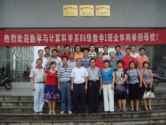 7月25日,数学与计算科学系86级数学1班全体同学怀着无比激动的心情回到母校。他们在班主任毛旭华老师的陪同下重游了老校区,参观了新校区,母校优美、舒适的校园环境和和谐、高雅的人文环境让他们赞不绝口。母校的变化更使他们思绪万千,激动不已。