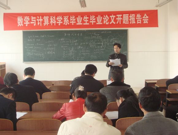 3 月13日上午,数学与计算科学系2006级毕业生毕业论文开题报告会在数学教学楼420室举行。系党总支书记周炎林、系主任罗李平教授、总支副书记林琼以及数学与计算科学系全体专任教师与毕业生参加了报告会。报告会由数学与计算科学系副主任杨柳主持。