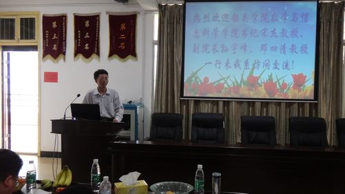 座谈会上,我系主任罗李平教授对韶关学院数学与信息科学学院宋杰书记一行的到来表示热烈欢迎,并简要介绍了我系教学、教研、科研、学科建设及人才培养等方面的基本情况。韶关学院数学与信息科学学院书记宋杰教授也简要介绍了该院的相关情况,并希望以后加强交流合作。随后,我系领导等陪同宋杰书记一行实地参观了该系的实验室、资料室、博士工作站、访问教授工作室等。