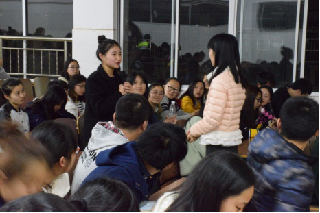 活动在杨烂同学充满激情的自我介绍中拉开帷幕。她结合自身阅历从师范生技能竞赛、技能培养以及就业三方面分享了她的经验。活动中她就师范技能竞赛中的相关流程做了简要介绍,并针对比赛中的有关应急措施提出了有效建议。随后她强调师范生要特别注重语言表达、课堂教态、粉笔字书写、多媒体课件以及授课艺术等技能的培养,并指出这些技能将对师范生今后从事教育行业至关重要。接着她鼓励在座学生多熟悉教学教材,多创新,多反思。随后她就就业方面,也跟在场的同学分享了她的感悟和体会。最后,本次活动在观众与杨烂的亲切互动中落下了帷幕。