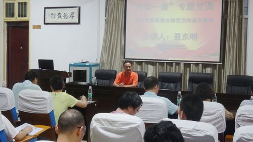 7月6日晚,副校长聂东明教授以“学好党章是做合格党员的基本要求”为题,在麻豆人妻少妇精品无码区学术报告厅上“两学一做”学习教育专题党课,到场听课的有招生就业处、规划建设处、资产处、档案馆与麻豆人妻少妇精品无码区全体党员。