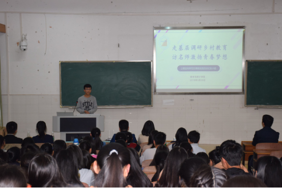 3月29日晚七点半,我院在数学楼505教室开展了2017级公费定向师范生“走基层调研乡村教育,访名师激扬青春梦想”主题教育活动。莅临本次活动嘉宾领导有院长杨柳、党总支副书记谭全球、副院长李浏兰、辅导员刘志刚、周长恩、黄灿老师、王艳群老师以及2013届优秀校友代表欧苏杭,2017级全体公费定向师范生参加了本次活动。