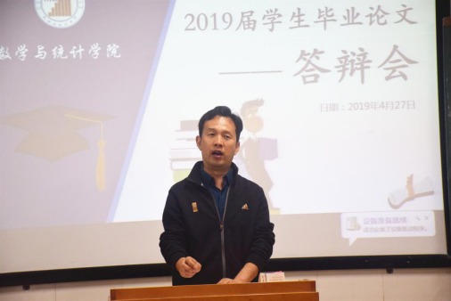 4月27日上午8点30,我院于数学楼316-319,418-421各教室举行了2019届学生毕业论文答辩会。答辩评审委员会由院长杨柳,副院长李龙以及各专任教师黄海午、李元旦、吴雄韬、曾云辉、宫兆刚、彭仁忠、刘刚和陈源担任,下设9个小组。我院副书记谭全球,辅导员周长恩老师以及教学秘书聂春芳老师进行组织协调。
