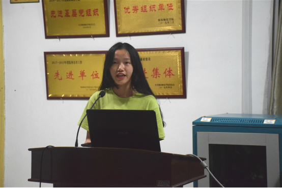 座谈会伊始,全体成员回看了习近平总书记在纪念五四运动100周年大会上的重要讲话视频。紧接着,院团委副书记贺文对大会上的重要讲话进行导读和回顾,她表示五四精神是一种不屈不挠的爱国主义精神,爱国者一定是从容而优雅、开放而自信的,并呼吁大家做到不忘初心、砥砺前行,不辜负祖国对青年的期望。随后,六名团员代表依次上台交流心得体会。他们分别从对五四精神的理解、榜样的故事、自己的亲身经历几方面畅谈学习感悟,并表示将用实际行动贯彻落实习总书记重要讲话精神。其中,学生干部肖博文分享的“两弹一勋”邓稼先的故事更是触动了在场的每一个人。