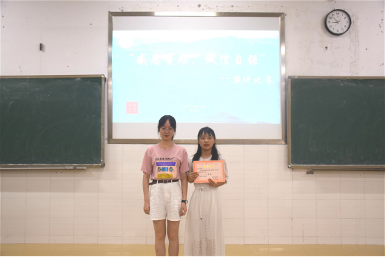 经过两个小时的激烈比拼,比赛最终角逐出一等奖1名、二等奖2名、三等奖3名以及优胜奖7名。来自1804班的彭丽娟同学的题为《我的世界里有一束光》的演讲斩获一等奖。