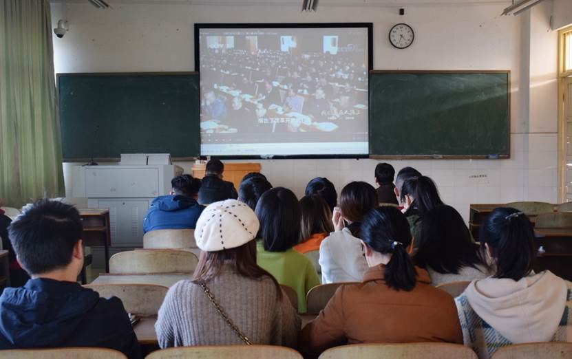 为增强民族意识,增强党员们的民族自尊心和自豪感,推崇中华传统美德和传统文化,11月20日下午四点半,我院学生第一、二党支部于数学楼521教室观看《我们走在大路上》纪录片,开展以“忆往昔,看今朝,展未来”为主题的主题党日活动。党总支书记杨家骏及学生第一、二党支部书记周长恩、刘琴出席本次活动,我院学生第一、二党支部全体党员参加活动。