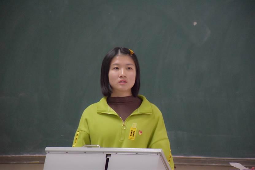 (学生第一党支部书记对《我们走在大路上》纪录片进行简单介绍)