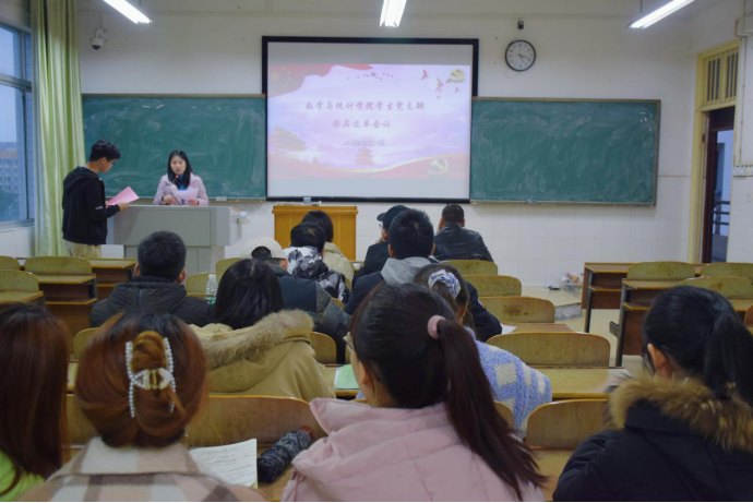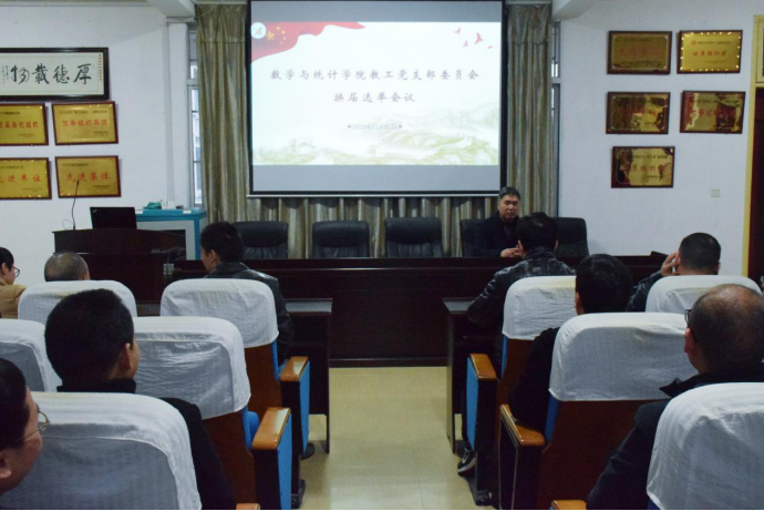 (应用数学教工党支部书记周勇主持教工党支部换届选举会议)