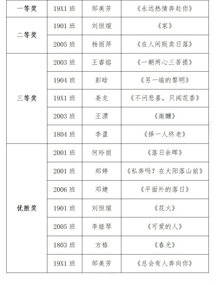 比赛经过宣传得到了同学们的大力支持,大家纷纷走出宿舍用手机或相机定格身边的温暖瞬间。经统计活动共收到40余份摄影作品,作品充分运用了几何学上的构图及其它数学元素,从不同方面反映了我院学生的校园风采、学习、生活。作品记录了生活中令人感动的温暖瞬间,在丰富校园文化生活的同时提高了我院学子的心理素质和人文情操。最终,活动评选出一等奖1名、二等奖2名、三等奖5名及优胜奖7名。