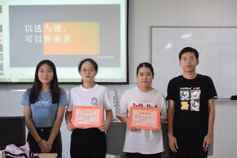 为深入学习贯彻习近平法治思想,考察学生对法治知识的掌握情况,9月21日上午9点,我院于理科楼(1)308教室举办了“讲宪法学宪法”演讲比赛。本次比赛由我院团委学生会各部门部长担任评委,共11名选手参加此次比赛,我院19、20级部分同学到场观赛。