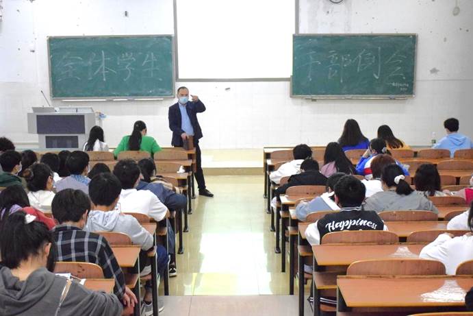 会议尾声,我院党总支副书记谭全球进行总结发言并提出几点要求:第一,要求各年级各班做好疫情防控工作以及心理健康工作;第二,要求就业部务必协助老师摸清毕业生求职情况;第三,要求学生党员及干部发动模范带头作用;第四,要求各班狠抓课堂考勤,培养优良学风。