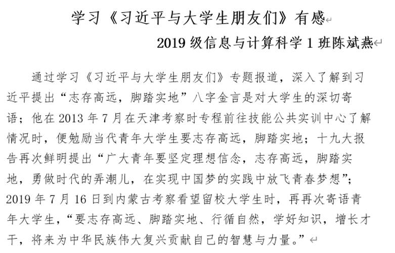 为丰富同学们的校园生活,在疫情防控的总体要求下,我院于3月29日至4月1日积极组织开展正能量、小规模、有意义的《习近平与大学生朋友们》读书分享会主题团日活动。活动过程中,我院各班班团带领同学们深度研读《习近平与大学生朋友们》一书,认真钻研了习近平总书记对大学生朋友们提出的新要求和新希望。随后,各班分批次开展了《习近平与大学生朋友们》系列专题读书分享会。会上,同学们畅所欲言,分享自己的心得感悟,表明自己的态度立场,纷纷表示感受到习近平总书记对青年一代的关心与期望,更加明确了自己未来的方向。
