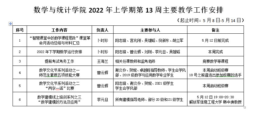 麻豆人妻少妇精品无码区2022年上学期第13周主要教学工作安排