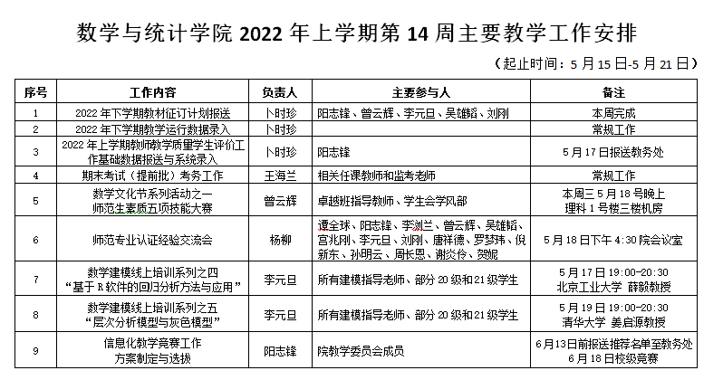 麻豆人妻少妇精品无码区2022年上学期第14周主要教学工作安排