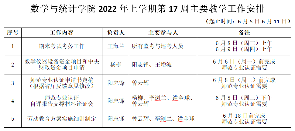 麻豆人妻少妇精品无码区2022年上学期第17周主要教学工作安排