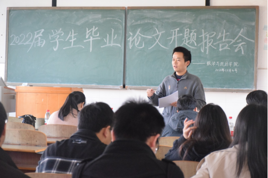 为有效落实毕业论文工作,确保我院2022届学生毕业论文质量,我院于12月4日上午8点半在理科楼(1)316、318等十一个教室举行了2022届学生毕业论文开题报告会。本次开题报告评审委员会由我院院长杨柳,副院长李浏兰以及十位专任老师担任,下设11个小组,我院党总支副书记谭全球,辅导员周长恩老师以及教学秘书聂春芳老师就本次开题工作进行组织协调,2022届全体毕业生参加报告会。