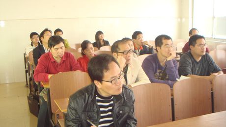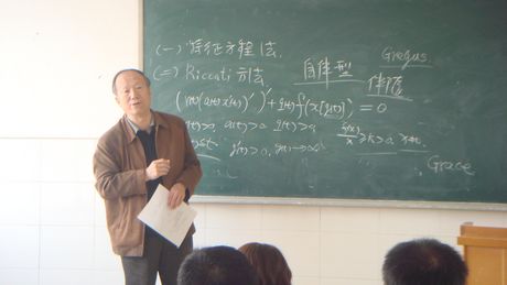 俞先生首先简单介绍了研究(泛函)微分方程的特征方程方法,然后就目前正在发展的三阶泛函微分方程的振动性问题,分别利用Riccati方法及Philos方法详细介绍了一类三阶自伴型泛函微分方程的振动性问题和一类三阶中立型泛函微分方程的振动性问题。报告中俞先生对如何灵活巧妙地运用这两种方法做了深入浅出的分析,并对之进行了比较说明。与会教师深受启发。