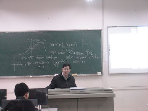 11 月月27日(周六)上午9:30,中山大学数学与计算科学学院博士生导师王其如教授应邀在东校区数学楼多媒体教室为数学与计算科学系教师做了一场题为“带有混合单调性的一类时滞反应扩散系统和一类时滞非局部扩散系统的行波解”的精彩报告。报告会由数学与计算科学系主任罗李平教授主持。