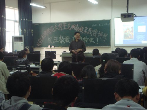 11 月28日上午,天津师范大学教授、《数学教育学报》(全国中文核心期刊、中国科技核心期刊)编辑部主任王光明博士在我院数学楼309教室为数学与计算科学系师生作了一场精彩而生动的学术报告。学院组织部聂东明部长,数学与计算科学系领导、部分教师和学生参加了此次报告会。报告会由数学与计算科学系总支书记周炎林同志主持。