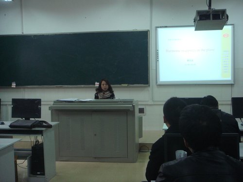 12 月14日下午3:30在数学楼多媒体教室,我系李浏兰博士作了《平面调和映射》的学术报告,我系部分教师参加了本次报告会。报告会由系主任罗李平教授主持。