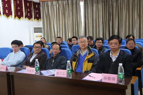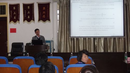 开幕式后是专家的学术报告。上午进行了4个学术专题报告:新加坡国立大学孙德峰教授作了题为“A rank-corrected procedure for matrix completion with fixed basis coefficients”的邀请报告,香港浸会大学廖立志教授作了题为“Continuous method models for a simple quadratic programming problem”的邀请报告,英国南安普敦大学戚厚铎博士作了题为“On the Single-Source Localization Problem”的邀请报告,香港浸会大学袁晓明博士作了题为“Nuclear-norm-free Variational Models for Background Extraction from Surveillance Video”的邀请报告。与会教师和专家学者进行了深入的学术交流的探讨。下午的会议上,我院副院长、学科带头人童小娇教授首先向各位专家介绍了“湖南省重点建设学科—运筹学与控制论”的人员结构、研究方向、基础条件、管理办法、发展目标等基本情况;接着,我院李龙博士和伍新华博士分别作了“A convergent smoothing algorithm for training fuzzy neural networks”和“再造物流网络优化设计的模型和算法”的报告,汇报了自己的科研工作,专家们对两位年青人的研究工作提出了很多帮助性的建议。