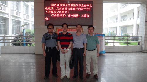 6 月17日,萍乡学院数学系主任李良松教授、系党总支书记张石林同志一行6人来我系访问交流。我系领导及教研室主任等接待了来访客人。双方在数学楼三楼会议室进行了座谈。