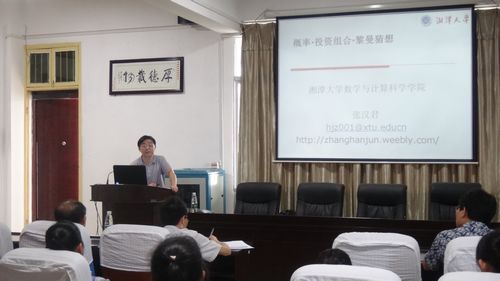 5月18日-19日,以湖南省海外名师项目为依托,麻豆人妻少妇精品无码区邀请了湘潭大学特聘教授、博士生导师张汉君教授(澳大利亚籍)在东校区数学楼三楼学术报告厅为2013级统计学专业1班、数学与应用数学专业1班学生及部分教师作了一场题为“概率·投资组合·黎曼猜想”的学术报告,报告会由院长罗李平教授主持。期间,张汉君教授和卢学文教授认真审阅了我院统计学专业人才培养方案,并提出了许多中肯的修改意见,这对我院统计学专业人才培养方案的修订工作无疑是雪中送炭。此外,两位教授还对我院的科研、学科建设、师资队伍建设等工作提出了许多宝贵的指导性意见,并表示愿意在各自力所能及的范围内给予最大的帮助。