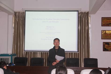 应麻豆人妻少妇精品无码区邀请,4月3日下午,加拿大卡尔加里大学数学与统计系终身教授、博士生导师卢学文教授在数学楼三楼学术报告厅作了题为“Introduction to Random Variable Generation with R and RStudio”的学术报告。报告会由学院院长杨柳教授主持,学院部分教师和2016级统计学专业学生共同聆听了此次报告。
