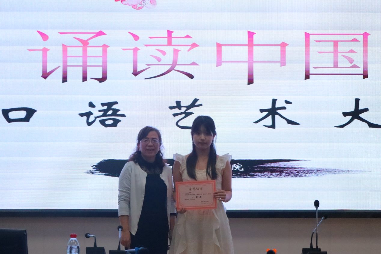 最后,彭巧燕书记对本次“诵读中国”口语艺术大赛进行了精彩的总结点评。她首先强调了普通话的标准性,指出在诵读中吐字的清晰是至关重要的,进一步提到,重音、停顿、断句和节奏的掌握是提升诵读水平的关键要素,能够赋予文字以生动的节奏感和韵律美。同时,也强调了表情的控制和服装的得体对于整体艺术效果的影响,她认为这些因素同样重要,能够增强诵读的艺术感染力。彭书记还特别指出,在诵读过程中,感情的充沛和充沛的艺术感染力是触动人心、展现诵读魅力的核心。她鼓励同学们在日后的诵读中,不仅要注重技巧的练习,更要深入理解文本,用心感受文字背后的情感,让每一次诵读都成为一次心灵的触动和情感的传递。