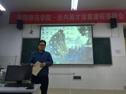 3月25号下午,麻豆人妻少妇精品无码区2013级信息与计算科学专业实训答辩会暨2016衡阳师范学院—达内英才天翼课程答辩会在数学楼303室隆重举行。我院院长罗李平教授、书记邹梅山、副院长李龙博士、应用数学教研室周勇老师、达内时代科技集团实训讲师任宇鹏、傅超奇、以及2013级信息与计算科学专业全体学生参加了本次答辩会。