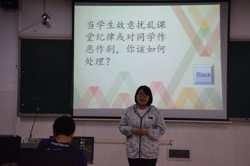 大赛在副院长杨柳、李龙对比赛相关注意事项进行分组解说后正式开始。随后,各选手通过抽签方式进行教育问答选题,在面对如何处理教学课堂上的突发状况和老师、家长和同学三者之间的矛盾问题时,参赛选手们凭借着沉着冷静的态度,清晰流畅的思路,简洁而又精炼的回答赢得了台下热烈的掌声。模拟授课环节中,每位选手均以自己独特的方式讲述了一堂生动的课堂,独具匠心的教学设计,丰富多彩的授课形式,通俗易懂的语言表达,将初中知识完美的呈现于“三尺讲台”之上。比赛结束后,罗李平院长、杨柳副院长分别对本次大赛做出总结,首先对我院的教学工作和选手的精彩表现予以了充分肯定,并对两组选手的表现进行详细点评,精辟地指出选手的优点与不足之处。