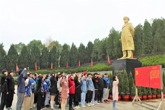 全体学生党员先是怀着无比崇敬的心情参观了罗荣桓故居、罗荣桓生平业绩陈列馆以及罗荣桓元帅铜像纪念广场,真切感受到革命志士救国救民、上下求索的爱国精神,点燃了他们的信念之火。随后,他们带着满腔敬意,在罗荣桓元帅铜像纪念广场整齐列队, 面对鲜红的党旗,党支部书记贺妮带领学生党员重温入党誓词,誓言字字铿锵有力,句句掷地有声, 表达了全体学生党员忠诚于党、不忘初心、永葆共产党员本色的炽热情怀。