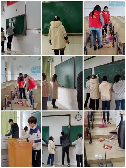 活动开始,在我院各班活动负责人的组织下,同学们开始共同清扫校园中每一块土地。他们以小组为单位,在学校的操场、草地、湖边等地方捡拾垃圾,进行垃圾分类再统一投放于垃圾箱中,致力于携手打造文明校园。接着,各位同学对理科楼(1)的每一间教室进行擦拭黑板、桌椅等清洁,努力改善我院学子学习环境。此外,每位同学在寝室长的带领下在寝室内开展全方面卫生大扫除,争取成为文明寝室。清扫结束后,各班举行了雷锋节分享交流会,大家热情分享,积极讨论,总结优势与不足,在整个校园焕然一新的同时,雷锋精神也深深烙印于每个人的心中。