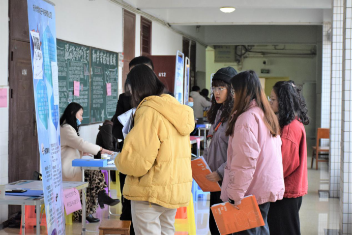 为使我院学生更多地了解企业应聘,深入了解今年不同以往的就业情况,增加我院毕业生的就业机会,12月6日上午,我院在数学楼顺利举办2021届信息与统计类毕业生专场招聘会。本次招聘会由衡阳师范学院招生与就业指导处主办,我院承办,招生与就业指导处副处长兼就业指导中心主任文怀诚莅临现场指导。我院党总支书记杨家骏、党总支副书记谭全球、就业专干周长恩老师提前抵达会场,了解招聘会进展,我院2021届毕业生积极参与。