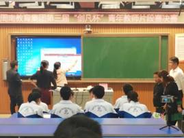 抵达中南中学后,全体学生进入多媒体教室观摩学习周南教育集团第三届“剑凡杯”青年教师片段教学竞赛。比赛现场,几位老师各展身手,以精美的教学课件、精炼的课堂语言以及稳健的台风展现出扎实的教学基本功。整场竞赛中,网络教学与学科资源整合有效贯穿,充分展现了青年教师们专业的教学态度和教学风采。比赛结束后,观摩人员纷纷表示受益匪浅,对自身教学技能的提升有很大帮助