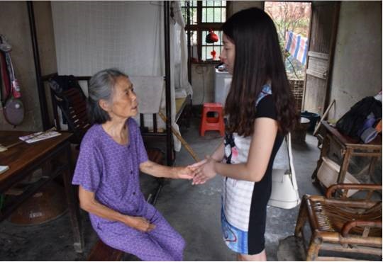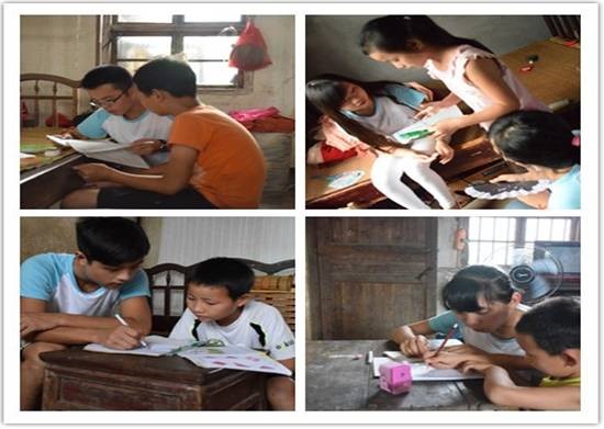 当日下午,队员们在刘琴老师的带领下到村子周边走访留守儿童,对他们进行亲情陪伴并辅导暑假作业。