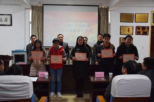 2017年1月13日下午,我院与衡阳市统计局关于建立“统计学专业校外实践教学基地”签字仪式暨统计学专业见习总结大会在数学楼三楼会议室成功举行。衡阳市统计局副局长李尔平、学校教务处副处长刘典文、我院党政全体领导及统计学专业相关师生代表参加了签字仪式。会议由学院副院长李龙主持。
