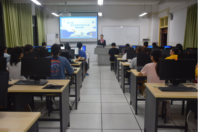 为展现我院大学生的专业才能和准教师风采,全面提高综合素质,我院于9月14日及9月17日晚组织举办第三届师范生素质五项技能大赛。本次比赛于数学楼303、308、309机房同时进行,特邀我院院长杨柳、副院长李浏兰、李龙以及我院部分指导老师出席并担任大赛评委,18、19级部分同学纷纷到场观摩。