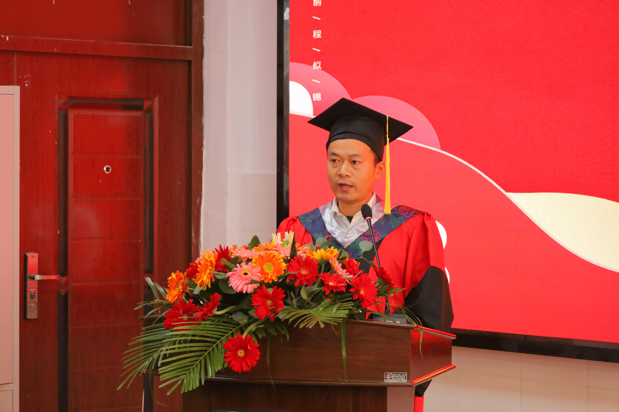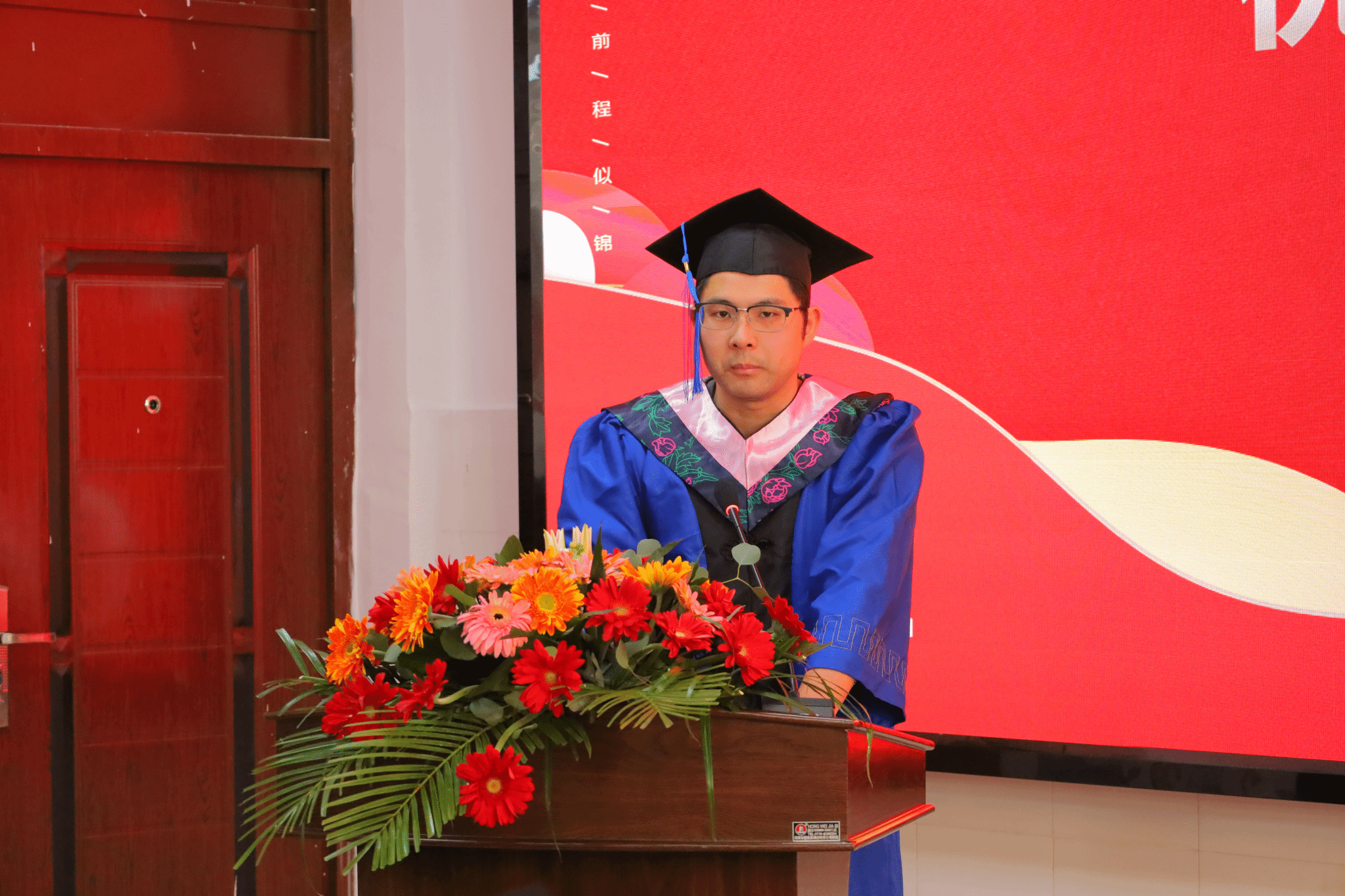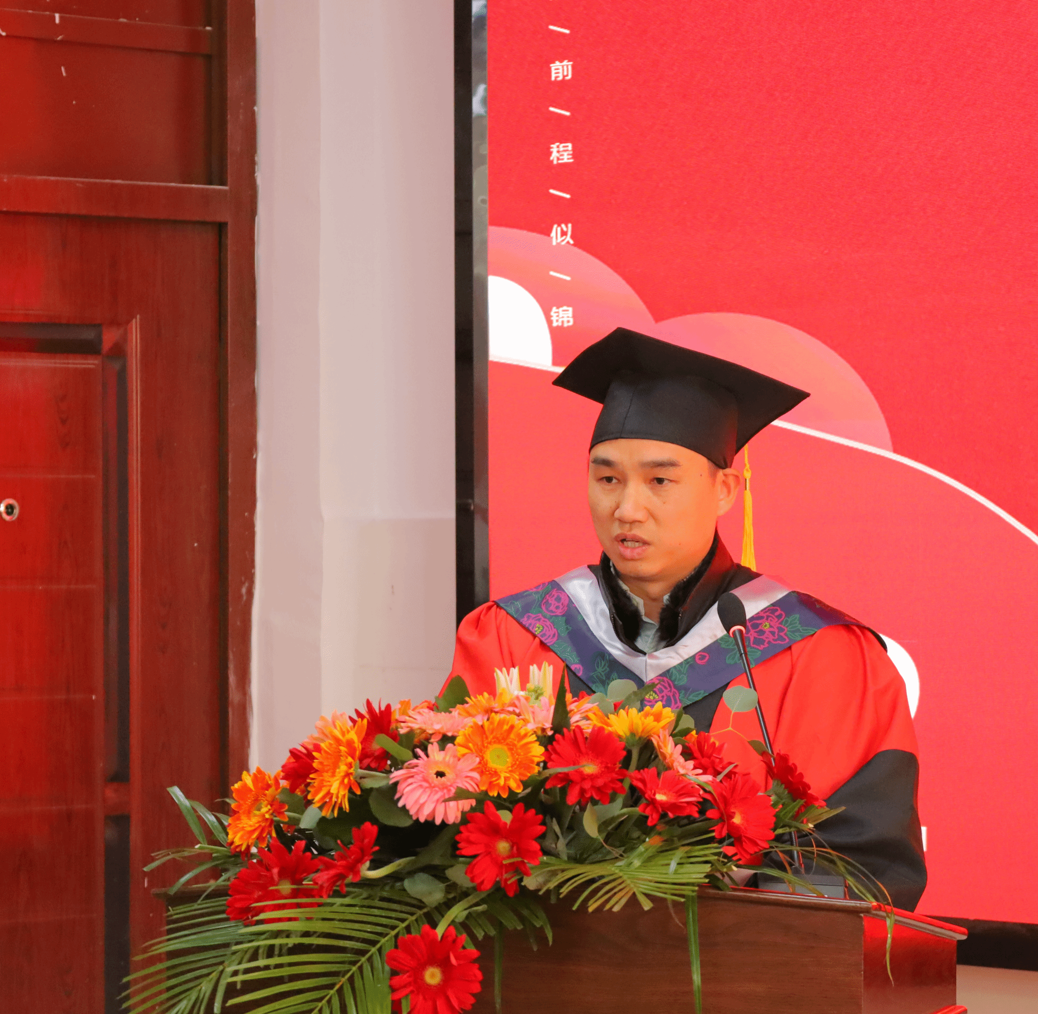 毕业典礼在庄严的国歌声中拉开序幕,院长李龙发表致辞。他以“特别不一样”、“特别不容易”和“特别有担当”三个关键词赞扬同学们在各自专业领域的优异成绩。李院长寄语毕业生学做人生中的“加、减、乘、除”,希望同学们主动肩负起伟大时代赋予的光荣使命,回答好“强国建设,青年何为”的时代课题,在新时代打开属于自己人生成长的新天地。