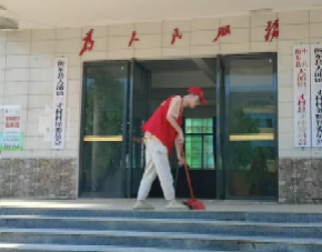 (志愿者清扫正门)