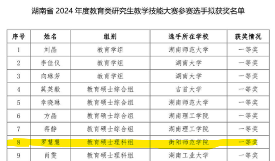 我院研究生在湖南省2024年度教育类研究生教学技能大赛中喜获佳绩