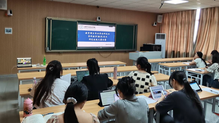 为进一步加强我院教育硕士研究生技能培训,提高实践教学能力,5月8日下午,我院于数学楼301教室举办2024年硕士研究生教学技能大赛。比赛由研究生秘书周立君老师主持,2023级学科教学(数学)专业19名研究生参加比赛。参赛选手提前通过抽签确定出场顺序和需要设计的课题,在开场前完成课题的教学设计和课件制作,进行10分钟片段教学。