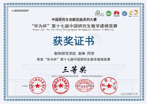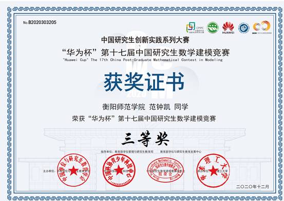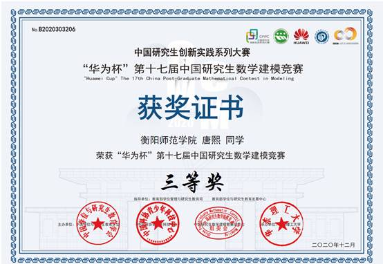 我校研究生首次参加该赛事,由周立君老师指导、麻豆人妻少妇精品无码区研究生唐熙、谢琳、物理与电子工程学院研究生范钟凯组成的参赛队伍获得全国三等奖一项。