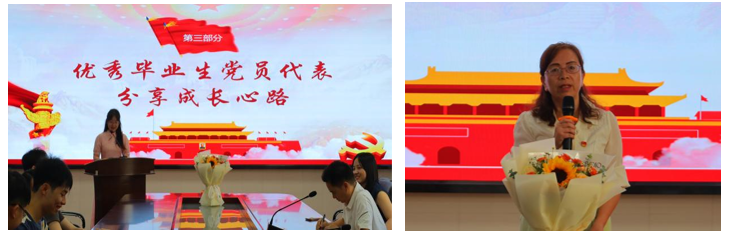 研究生党支部书记贺妮发表了热情洋溢的致辞,她寄语毕业生党员,要铭记党员身份,践行初心使命,如新竹高于旧竹,凭借坚实的根基和不懈的努力,不断超越自我。紧接着,本科生党支部书记唐威带领全体党员重温入党誓词,誓言铿锵有力,时刻激励着党员们坚定信念,砥砺前行。