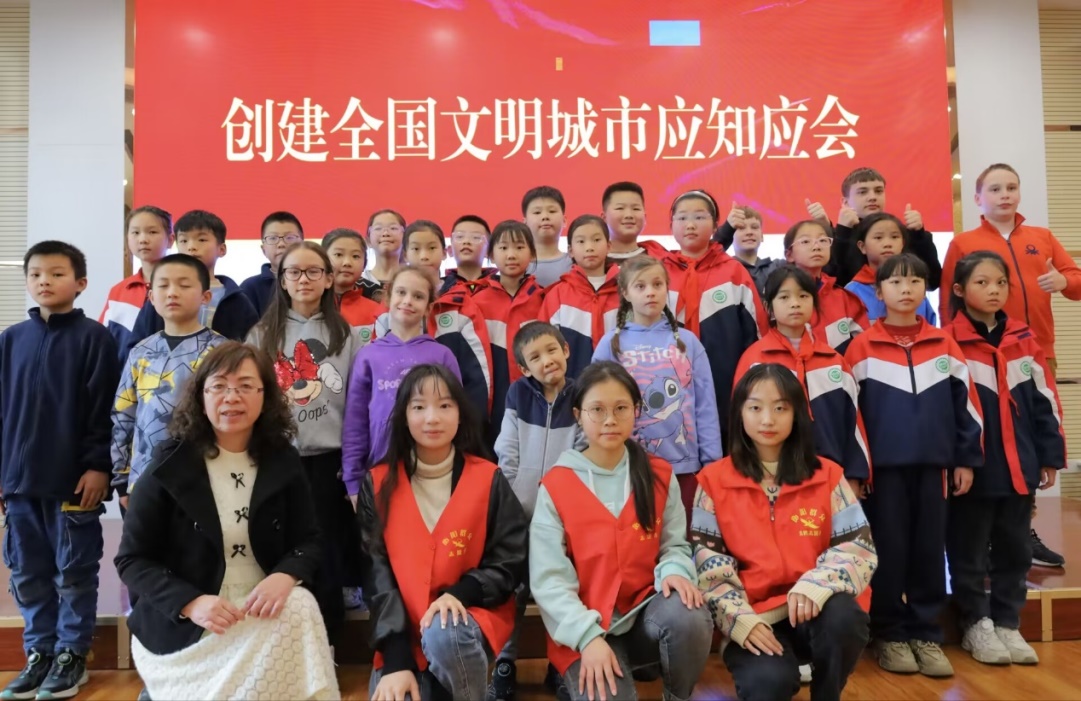 教学楼清扫活动结束后,为了提高学生们对于文明城市创建的重视程度,党总支组织学生党员们为衡阳师范学院附属小学的同学们科普文明创建相关知识。活动当天,党员们精心准备了丰富多彩的科普材料,生动的PPT演示、有趣的互动游戏、形象的实物展示等,此次活动向小朋友们传递文明理念,为培养更多具有文明素养的青少年贡献力量。