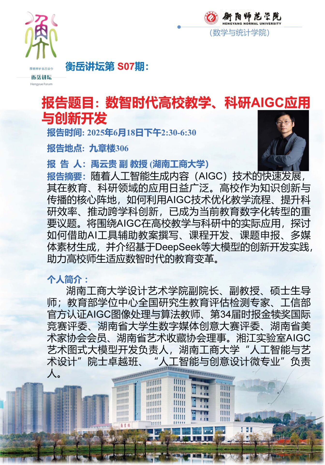 学术讲座预告(2025.06.18)/禹云贵:数智时代高校教学、科研AIGC应用与创新开发